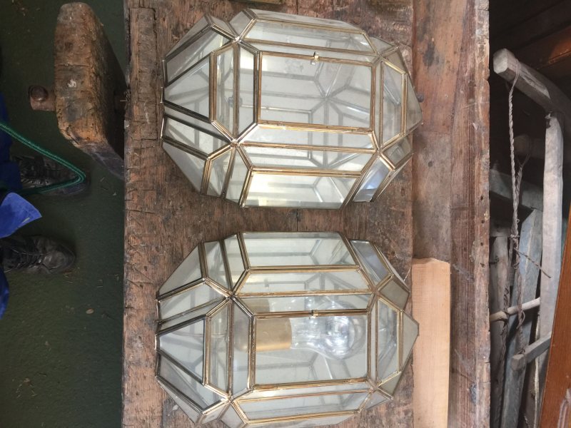 Par de apliques antiguos, cristal comunión de bronce, puertecilla para bombilla, precio unidad