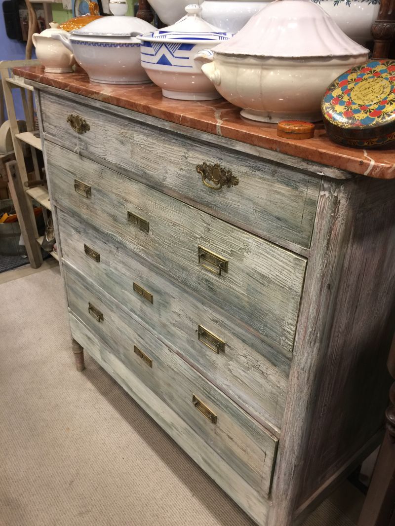 Antigua Comoda Catalana «De La Ditada» Sobre Mármol Blanco, Muy Buen Estado 122 cm X 50 cm x 114 cm.