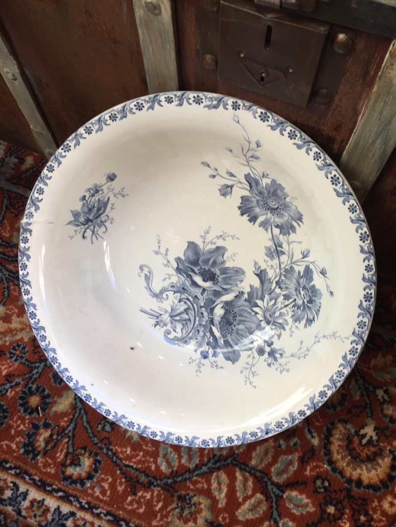 Palangana con estampado azul muy antigua